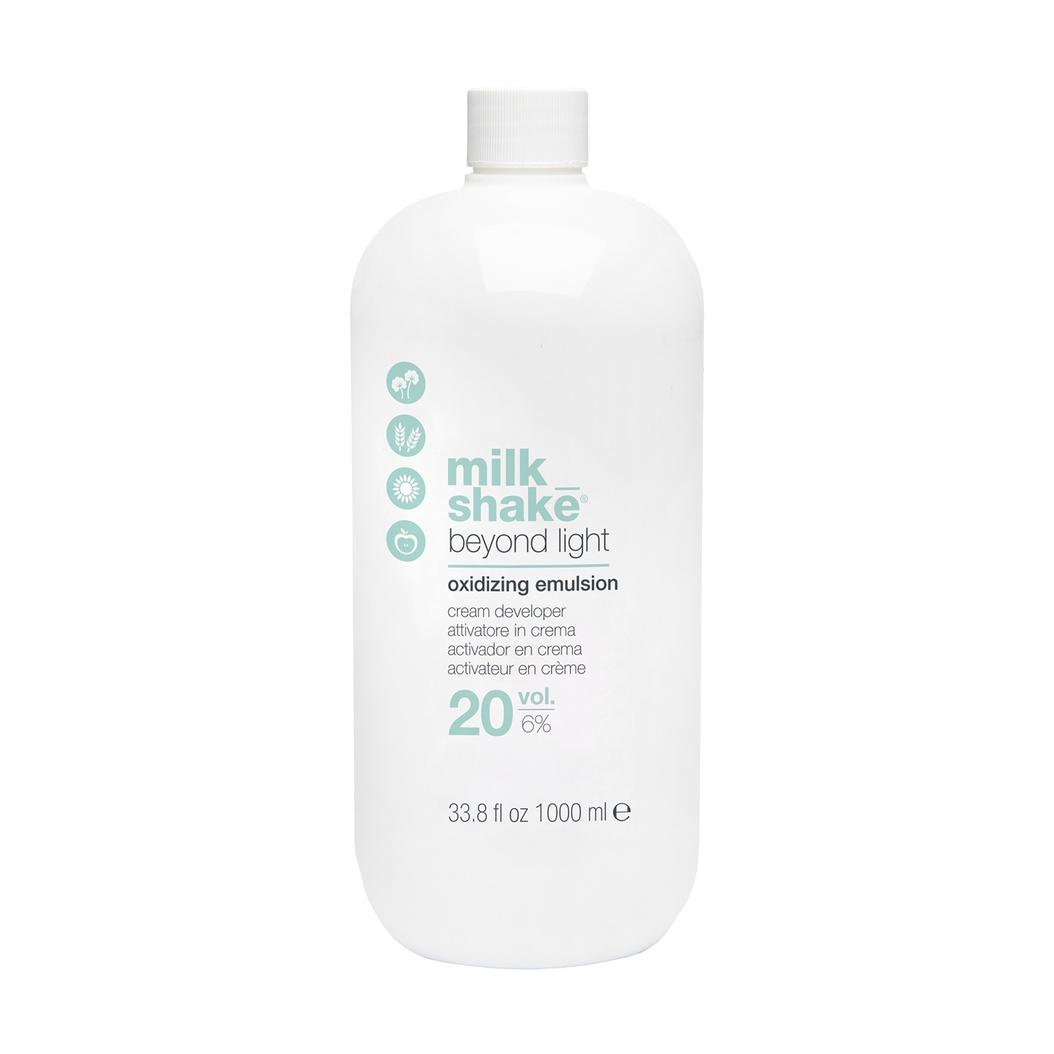 Oxidizing emulsion formulated to cover grey hair, colour untreated natural or previously colour-treated/lightened hair give up to 2 levels of lift on natural bases when combined with milk_shake® beyond light ammonia free conditioning permanent colouring cream for hair.