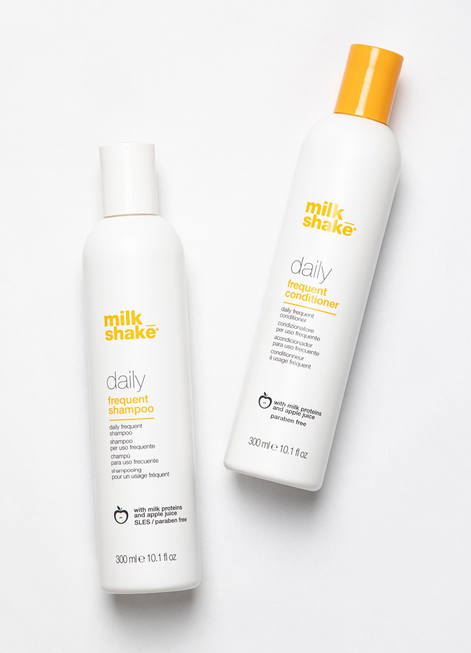 Gentle shampoo specifically designed to hydrate and protect hair that requires frequent washing. With milk