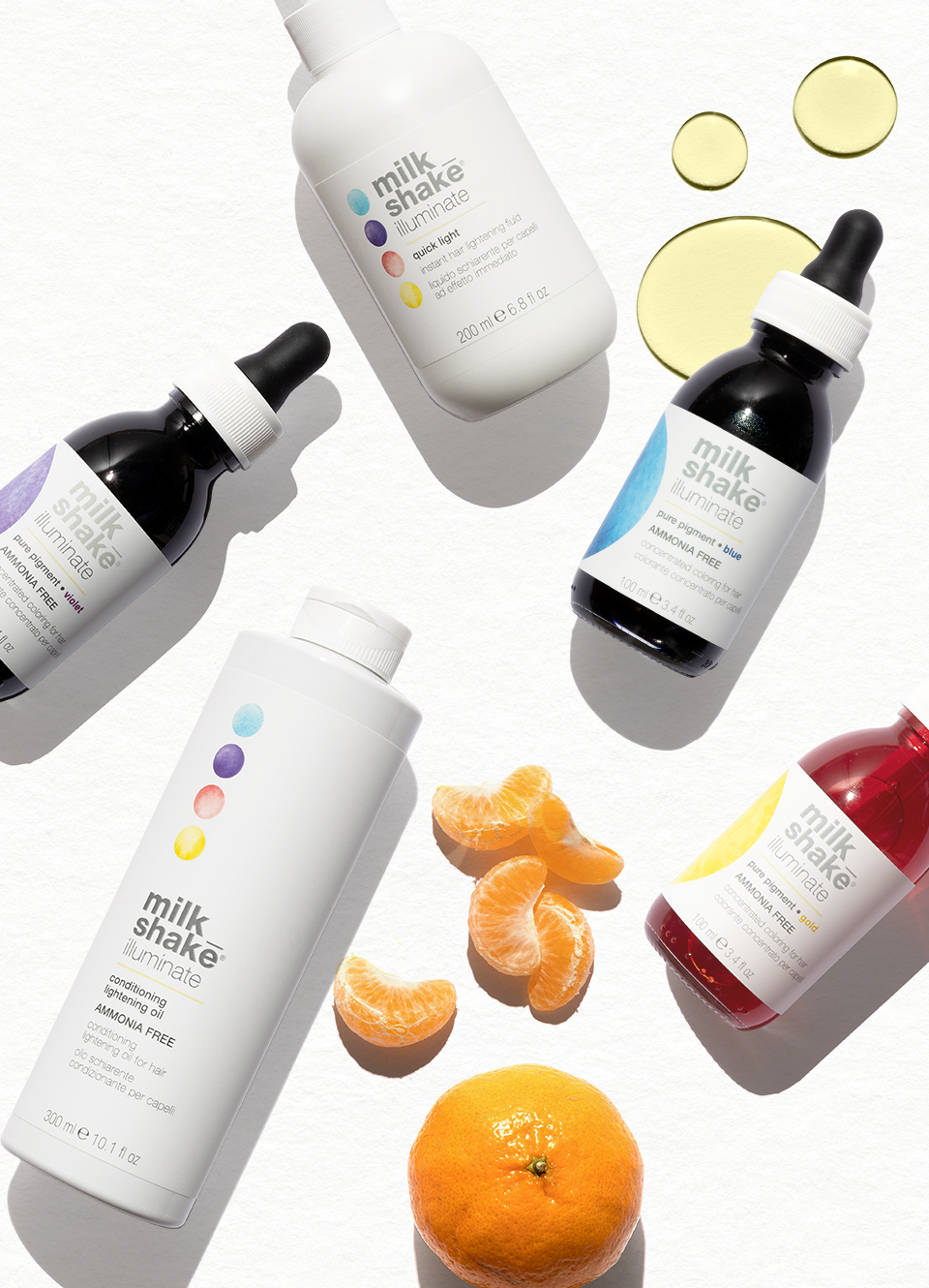 hair. Gives creativity to the lightening process, tones and illuminates the hair with creative, chromatic effects.