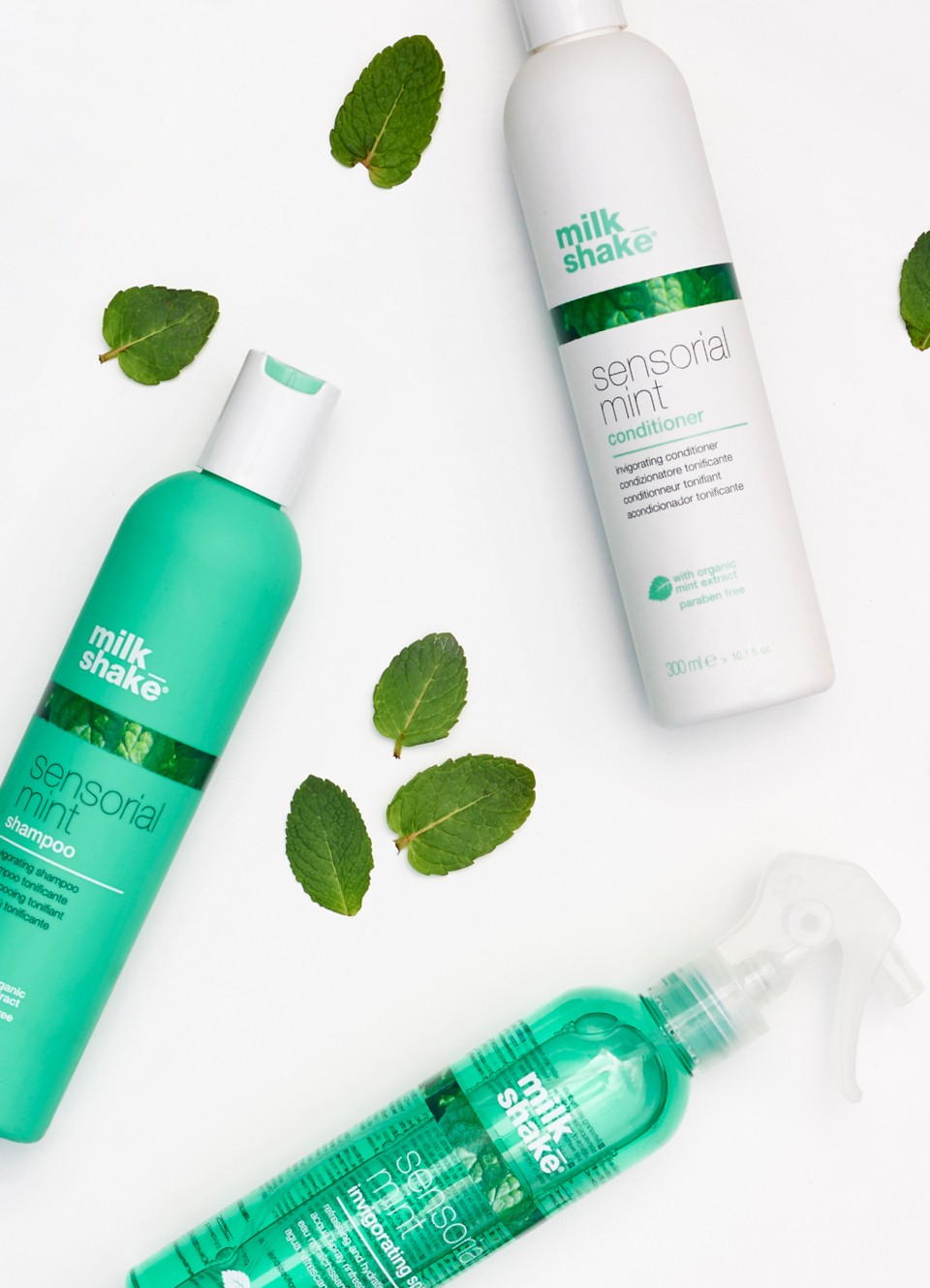 A fresh, energizing mint spray that envelops hair and skin in a fresh sensation of wellbeing. Perfect during