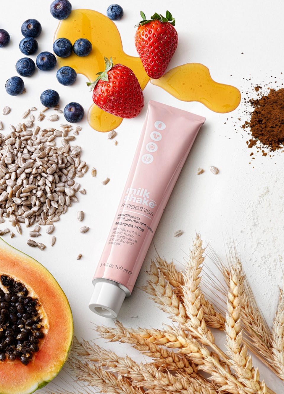 are two sides to the smoothies colour range: a vibrant and radiant colour, typical of a permanent hair colour, and the