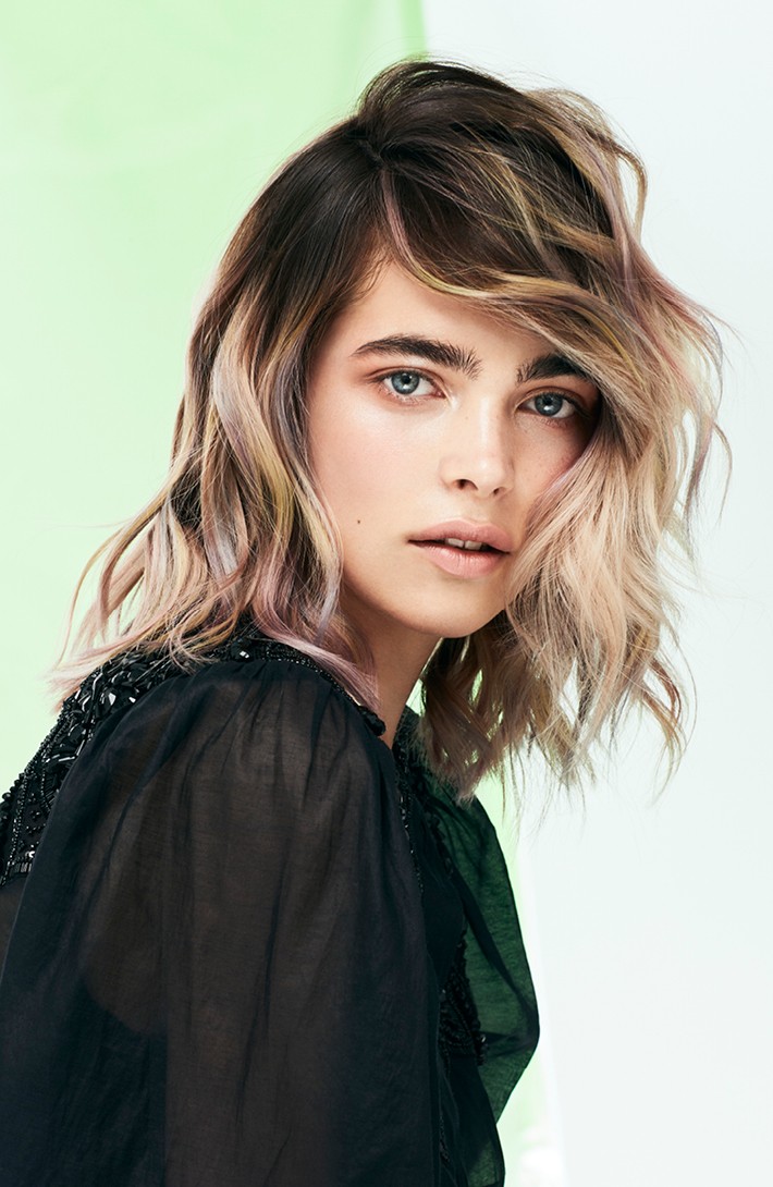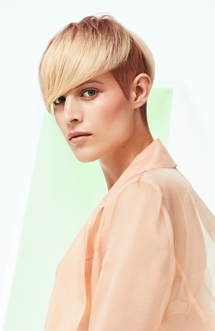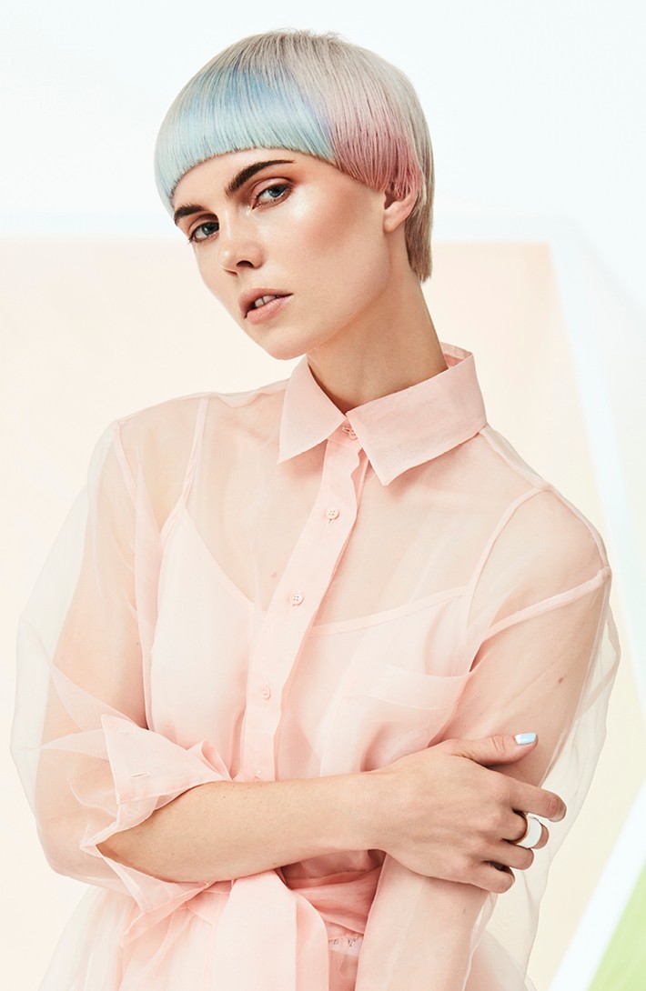 Las tonalidades son pastel y actúan como vínculo entre cortes y colores, representando la máxima expresión de creatividad estilística. Gracias a los colores y transparencias es como rozar todo para darle un sentido puro a la belleza. En la era dedicada a las emociones, la mujer PURE mira a través de los colores para proteger los pensamientos y liberar sentimientos.